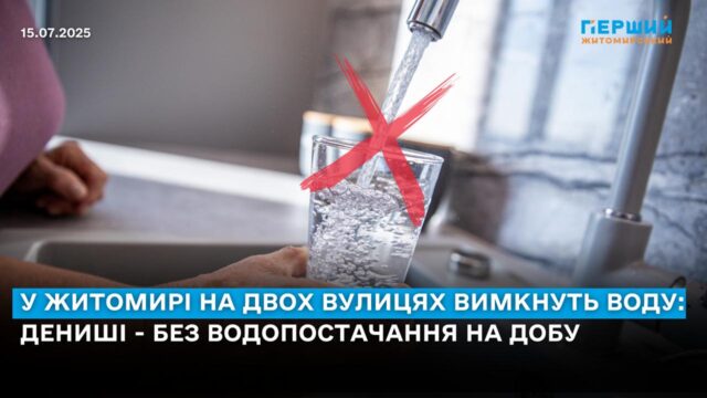 Окремо КП «Житомирводоканал» інформує, що з 11:00 15 липня до 11:00 16 липня буде припинене водопостачання у селі Дениші. Обмеження пов’язане з проведенням технічних заходів на одному з об’єктів водопостачання.