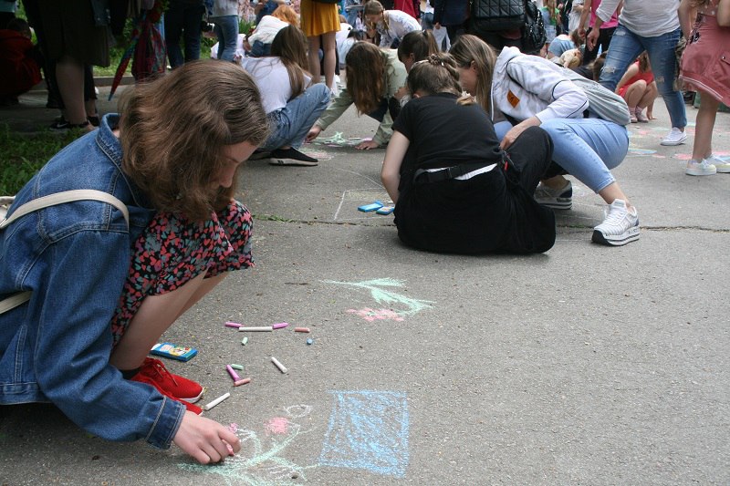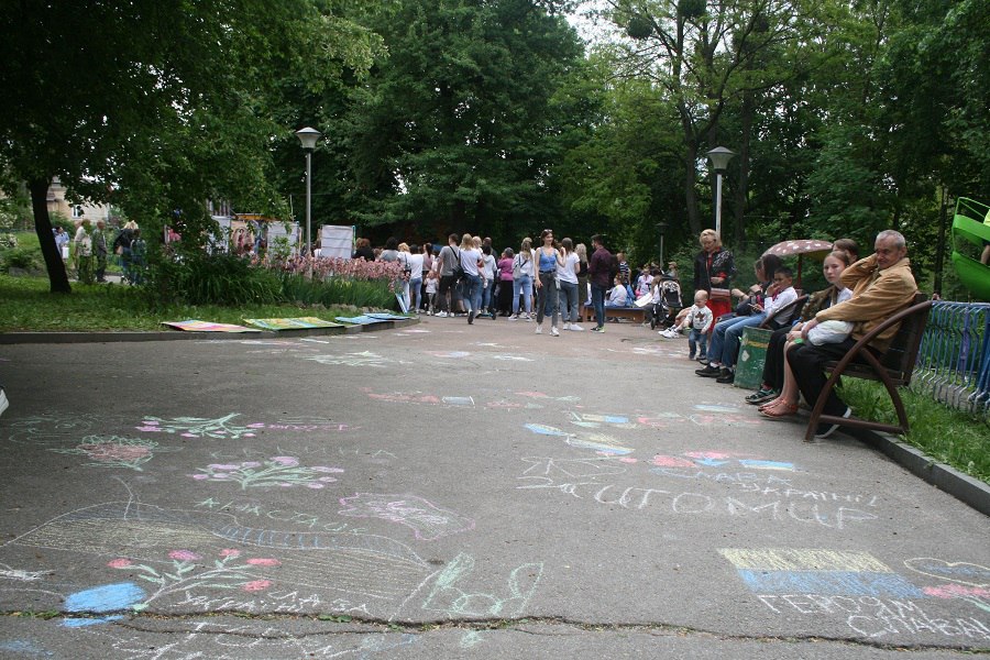 Першого дня літа в Україні відзначають День захисту дітей. Цього року, попри війну, на Старому Бульварі було людно. Для маленьких житомирян організували висадку калини, малюнки на асфальті, конкурси та забави.