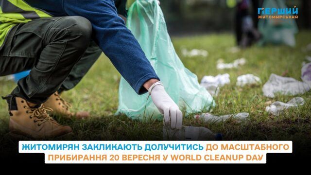 20 вересня у Житомирі відбудеться Всесвітній день прибирання «World Cleanup Day». У місті вже видано розпорядження міського голови №935 від 16.09.2025 року, яке зобов’язує виконавчі органи міської ради, підприємства, установи, організації, ОСББ та власників житлових будинків навести лад на власних, закріплених та прилеглих територіях. Про це повідомила пресслужба ЖМР.
