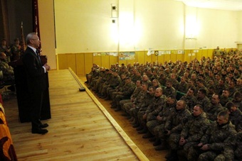 — Те, що ви робите сьогодні, бачить і безмежно цінує весь український народ. Велика вам шана за подвиг і ратну службу! — наголосив Ігор Долгов, після чого вручив відзнаки Міністерства оборони України та цінні подарунки кращим військовослужбовцям 95-ї бригади.