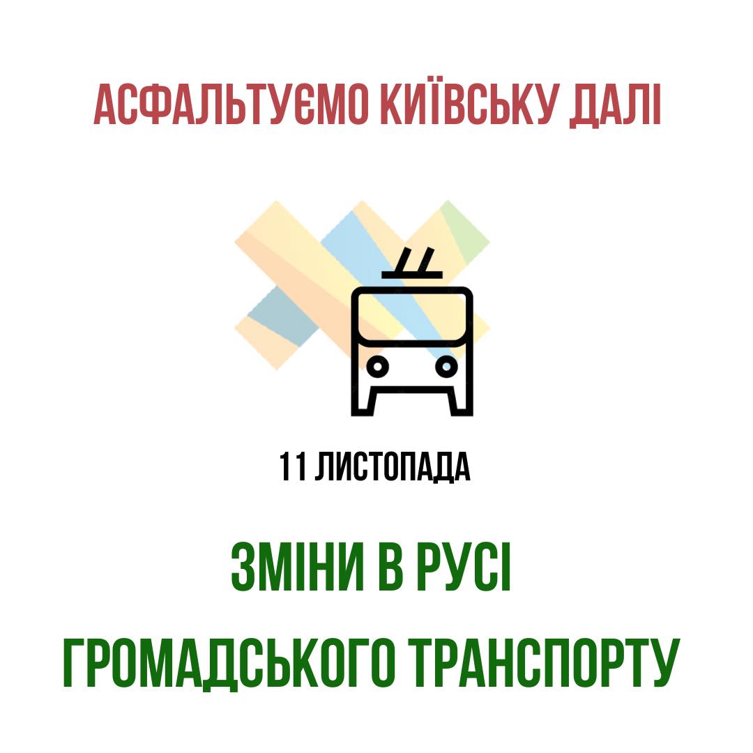 “Київську продовжують асфальтувати: ділянка від Хлібної до Небесної сотні. Буде призупинено рух тролейбусів: №1А, №15“, – йдеться в повідомленні.
