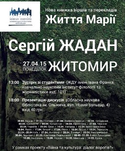Сергій Жадан 27 квітня завітає до Житомира із презентацією нової книги "Життя Марії".