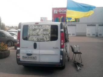 Щодня на парковці біля ТРЦ "Глобал UA" представники ГО "Житомир-Автомайдан" проводять збір необхіднох речей для військових, що перебувають в зоні АТО.