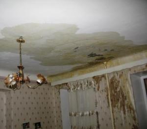 Один із гуртожитків міста по щиколотки заповнила вода зі стелі в кімнатах і на кухні. Мешканці гуртожитку нарікають на постійну сирість, грибок і цвіль.