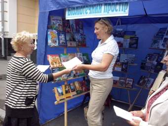 На вулицях міста у інформаційних палатках працюють бібліотекарі. Вони нагадують житомирянам про сучасні бібліотеки, залучають нових користувачів, популяризують літературу з різних галузей знань, знайомлять перехожих з послугами бібліотек.