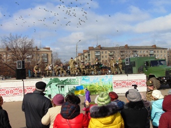 8 березня, військовослужбовці 95 окремої аеромобільної бригади ВДВ Збройних Сил України організували святковий концерт на центральній площі Слов’янська, що на Донеччині. Таким чином вони привітали всіх представниць прекрасної статі міста з Міжнародним жіночим днем. Про це повідомляють на сайті Міноборони.