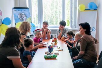 Зустріч організована з метою зібрання діток житомирських учасників АТО і виготовлення подарунків для героїчних татусів. На діток чекав творчий майстер – клас зі створення креативної привітальної листівки, розмальовування гіпсових фігур, ігровий куточок та солодкі частування.