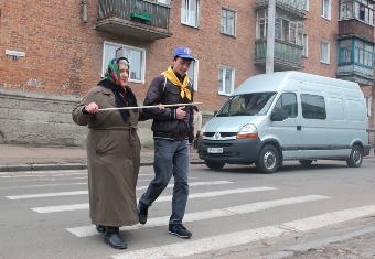 Сприяти проведенню акції узялися й працівники ДАІ, що заручилися підтримкою своїх помічників – юних інспекторів руху. ДАІшники зупиняли транспортні засоби на перехрестях, оснащених відповідними попереджувальними дорожніми знаками, що сповіщають про перехід проїзної частини сліпими пішоходами. Волонтери та ЮІРівці, у свою чергу, спілкувалися з водіями автівок та закликали їх створювати безпечні умови для особливих пішоходів.