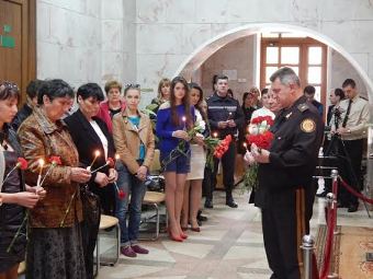 Отець Григорій, священик Спасо – Преображенського Кафедрального, відправив біля меморіального комплексу Управління ДСНС в області панахиду по загиблим. Після молебну він звернувся до рідних та близьких ліквідаторів, до співробітників управління, до присутніх гостей із словами поваги та вдячності. Ці імена, зазначив він, повинні пам’ятати майбутні покоління і схиляти голови перед їхньою мужністю. Він також звернув увагу на те, що трагедія сталася у ніч великого свята Великодня, а як кажуть канони церкви, воїни, які поклали свої життя у такий день, без випробувань потрапляють у царство небесне.