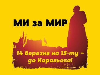 В п’ятницю 14 березня о 15-00 на майдані Корольова відбудеться флешмоб "МИ за МИР".