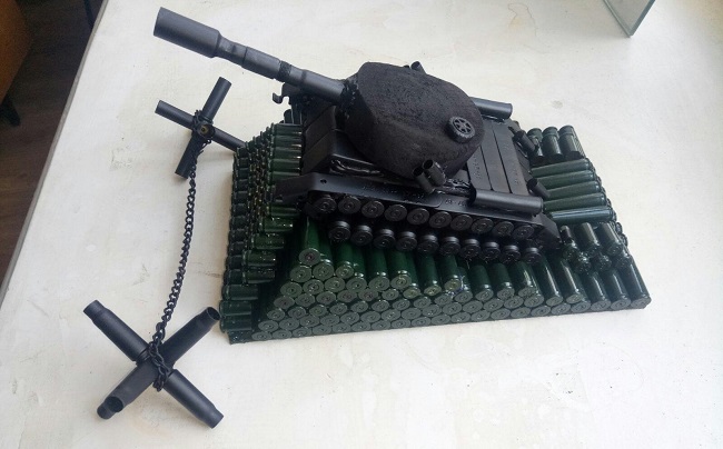 – Я склеїв дитині невеличкого танка зі стріляних гільз. Вийшло цікаво і дуже схоже на іграшкову модель. Потім спробував ще кілька варіантів. Завжди усім казав і зараз стверджую, що зброя і боєприпаси – небезпечні для життя. Однак пусті, вихолощені «болванки» можуть стати мілітарі-сувенірами для поціновувачів, – каже Анатолій.