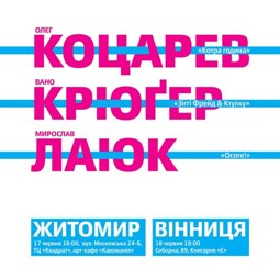 Житомирян 17 червня о 18.00 запрошують на авторське читання поезії Олега Коцарева, Вано Крюґера та Мирослава Лаюка у самій містичній кав’ярні — кав’ярня "Кавоманія".