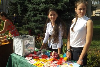 Крім цього, влаштували розпродаж аксесуарів із патрітичною символікою, зображенням герба Житомира та фото Корольова.