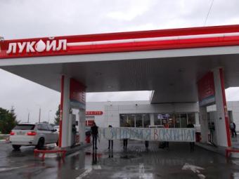 Щоб пояснити українським громадянам увесь масштаб загрози від купівлі російського бензину, активісти розгорнули великий банер з надписом: «Не заправляйся в окупанта». Але тримати цей банер активісти могли лише декілька хвилин, оскільки на них напала охорона АЗС Лукойл. Активістів штовхали, намагалися вибити з рук відеокамеру, вирвали й порвали банер. Цими діями АЗС Лукойл лише підтвердили слова активістів, вона не лише фінансує війну, а й нападає на мирних протестувальників, які намагаються донести правдиву інформацію до українців. Активістів не здивувала така реакція працівників АЗС Лукойл, хоча і обурило, тому учасники акції вирішили згодом знову навідатися до цієї заправки, щоб влаштувати акцію-флешмоб.