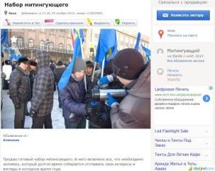 Крім цього на Slando активно вербують людей для участі в різних мітингах, пропонуючи за таку «роботу» по 15-20 гривень на годину.