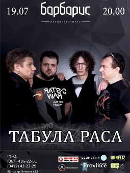 У цьому місяці лаундж-ресторан "Барбарис" приготував подарунок! В Житомир їде легендарна рок-група "Табула Раса"!