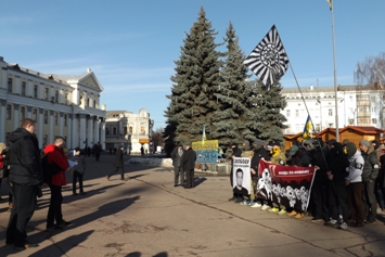 В центрі Житомира на майдані Корольова 14 січня активісти бойового осередку ГО "Чорний корпус" влаштували акцію-пікет на підтримку вінничанина, добровольця "Азову" Юрія "Хорти" Павленка.