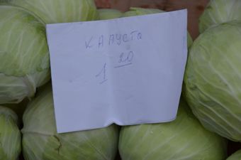 Бабусю Ганну Кондратюк, яка прийшла на ярмарок купити капусту та моркву, порадували ціни. Морква в середньому коштує 2.20 грн., капуста — 1,30 грн.