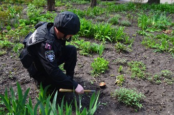 Під час огляду території біля будинку експерти виявили на клумбі музичну скриньку, яка працювала на акумуляторах. Як повідоміли в міліції жодної загрози для людей ця річ не становила.