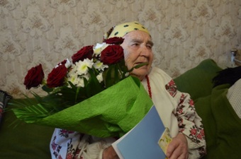 З нагоди знаменної події ювілярку привітали представники департаменту соціального захисту населення й вручили вітальний лист від міського голови.