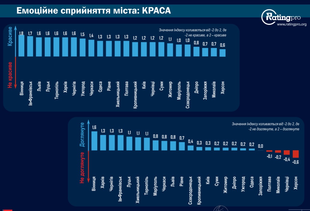 Житомиряни вважають місто красивим, тихим, радісним, комфортним, але не розвиненим і не унікальним.