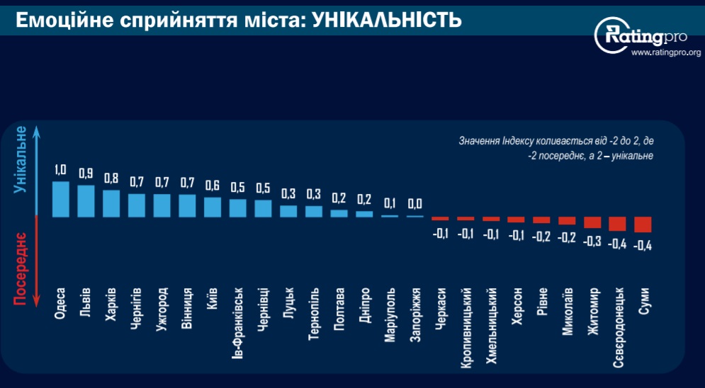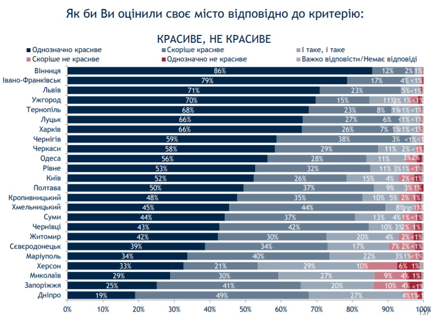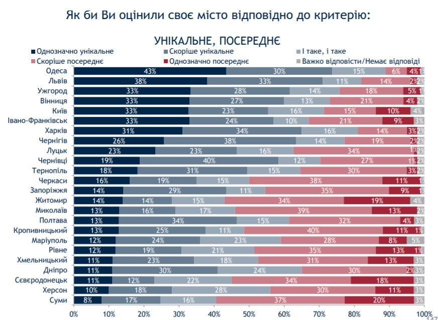 Натомість щодо унікальності, то більшість (53%), назвали місто посереднім, унікальним його вважають 28%.