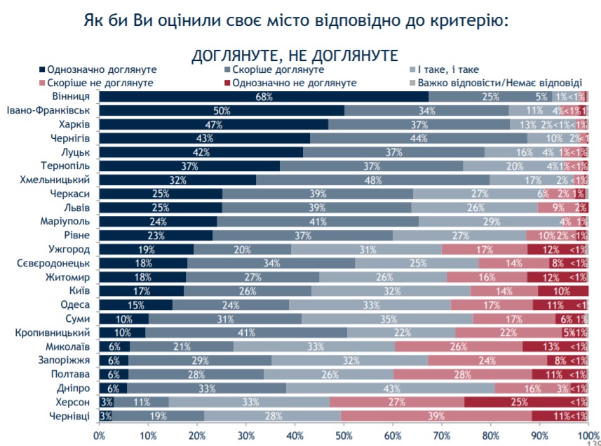 Зокрема, 72% опитаних житомирян вказали, що місто красиве. 45% вважають Житомир доглянутим, 46% – радісним і сучасним.