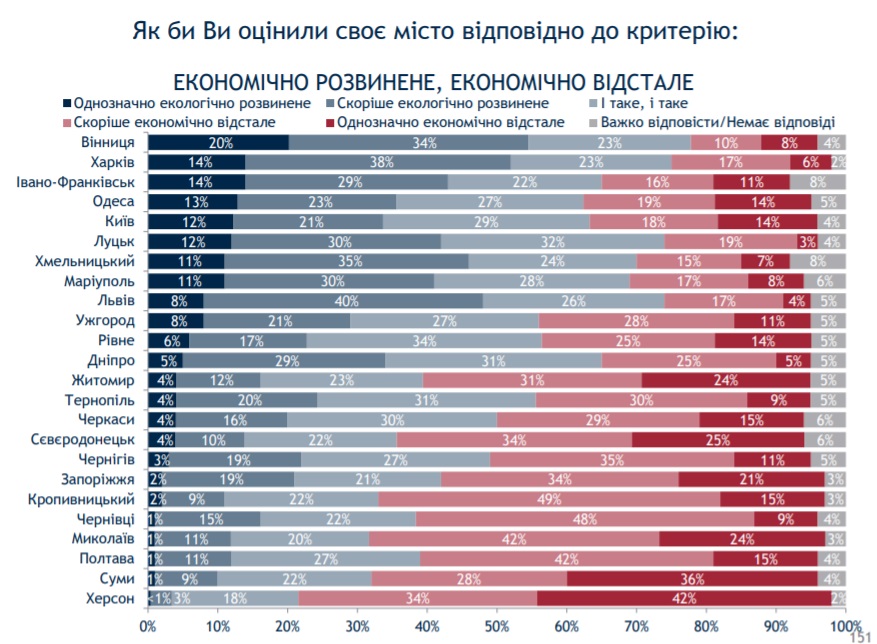55% житомирян вважають своє місто не розвиненим, навпаки ж думають тільки 16%.