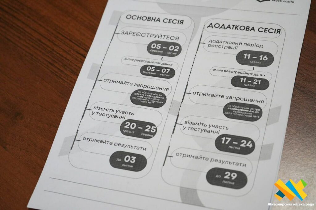 За словами заступниці директора департаменту освіти Житомирської міської ради Ірини Лавренчук, до 7 квітня вступники основної сесії зможуть внести зміни до реєстраційних даних у персональному кабінеті — зокрема змінити предмет на вибір та місце проходження НМТ в Україні або за кордоном. Для учасників додаткової сесії така можливість діятиме до 21 травня.