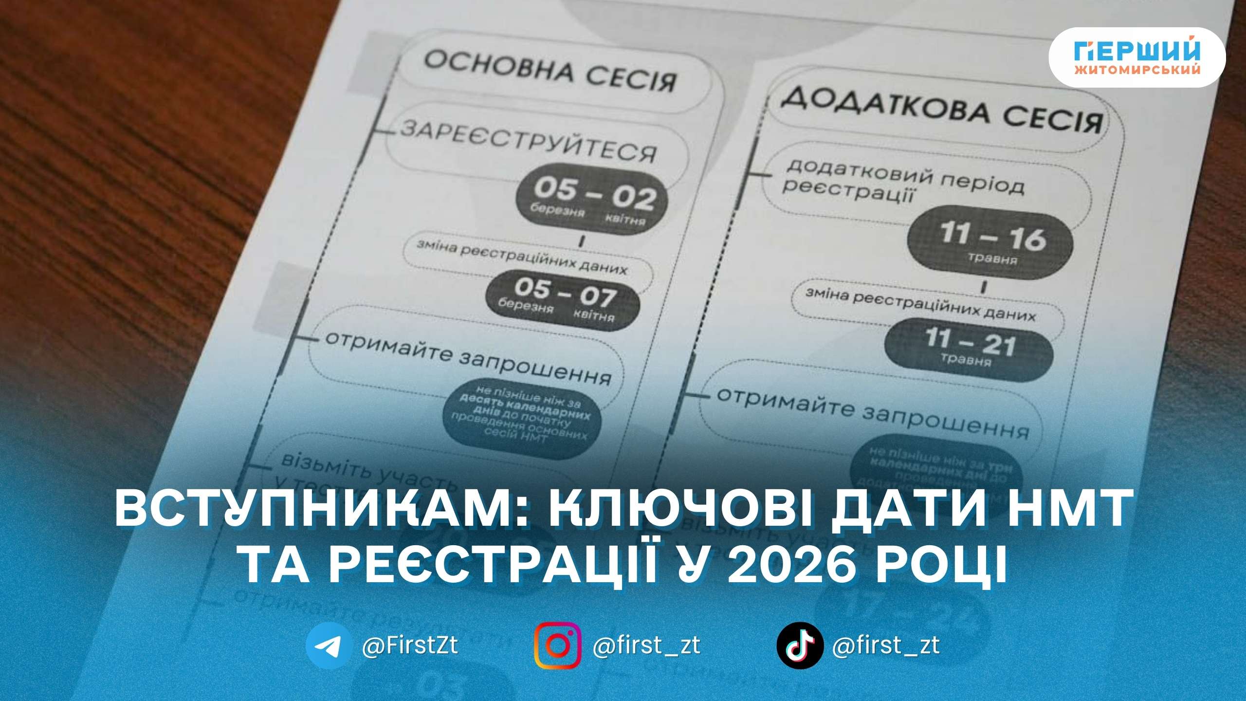 Основна сесія НМТ триватиме з 20 травня по 25 червня 2026 року, додаткова — з 17 по 24 липня.