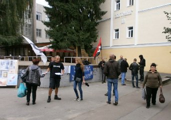 На Михайлівській 8 вересня автономні націоналісти Житомира провели інформаційну акцію, під час якої роздавали листівки перегожим з вимогою підтримати їх заклики щодо заборони прийому іноземних студентів на навчання у місцеві вузи.