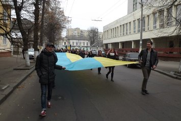 Близько 2 тисяч студентів з національною символікою колоною стартували від Бульвару, а далі зупинилися на майдані Корольова, де поклали квіти до стенду з інформацією про загиблих героїв "Небесної сотні". Там до них приєдналися чиновники міськради та облдержадміністрації.