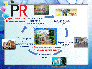 Нещодавно Житомирська обласна бібліотека для дітей стала однією із переможців нового Всеукраїнського проекту програми Бібліоміст на створення регіональних PR-офісів сучасних бібліотек, створивши таким чином PR-офіс бібліотек Житомирщини, до складу якого увійшли: