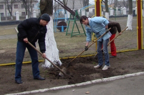 Молодий сад вихованці Радомишльської школи-інтернату висадили разом з шефами-міліціонерами.