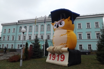 Перед входом у центральний корпус вузу розмістили велитенську сову – символ Житомирського державного університету, яку на кілька годи усі перехожі облюбували для фотографування.