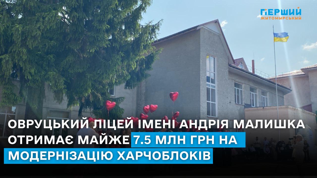 У межах четвертого розподілу державної субвенції на суму понад 158 млн грн, Житомирська область отримає майже 7,5 млн грн для модернізації харчоблоку в Овруцькому ліцеї імені Андрія Малишка. Проєкт було подано на конкурс через цифрову екосистему DREAM, яка дозволяє автоматично формувати рейтинговий список заявок за критеріями пріоритетності.