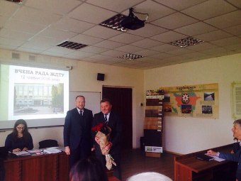Під час зібрання ректор університету Віктор Євдокимов озвучив рішення Вченої ради, відповідно до якого д.т.н., професору Петру Петровичу Мельничуку присвоєно звання «Почесний ректор ЖДТУ».