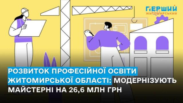 У межах державного проєкту «100 майстерень» Житомирська область отримає 26,6 млн грн на розвиток професійної освіти. За інформацією Житомирської обласної військової адміністрації, ці кошти спрямують на оновлення навчально-практичної бази чотирьох фахових і професійно-технічних закладів регіону.