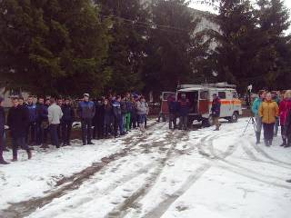 Розпочався захід із спільного відпрацювання дітьми та рятувальників практичних дій щодо евакуації з приміщення гуртожитку технікуму за сигналом «Увага всім!». А на подвір’ї всіх очікували працівники Любарської екстреної медичної допомоги, які навчали усіх бажаючих надавати першу медичну допомогу.