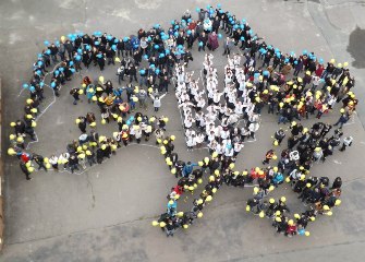 Вони також приєдналися до флешмобу, спільно створивши живу фігуру герба та карти України.
