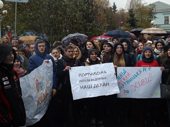 Як і обіцяли напередодні, студенти соціально-психологічного факультету Житомирського державного університету ім.І.Франка продовжують акцію проти обрання та призначення нового декана Наталії Дубравської.