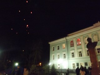 Студенти Житомирського державного університету ім.І.Франка протягом тижня влаштовують святкові заходи до Дня студента. Зокрема, увечері 14 листопада перед центральним корпусом вузу влаштували запуск небесних ліхтариків.