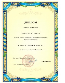 Співробітники Житомирського військового інституту імені С. П. Корольова Державного університету телекомунікацій також брали участь у даному конкурсі, – повідомляє прес-служба університету. Майор Токар Андрій Миколайович, який 25 жовтня 2013 року успішно захистив дисертацію на здобуття наукового ступеня кандидата технічних наук, уже 28 листопада цього року за підсумками Всеармійського конкурсу в номінації «Медицина» зайняв призове третє місце, яке заохочується грошовою винагородою. Перемогу заявленого в конкурсі винаходу «Спосіб корекції функціональних робочих станів людини при розумових навантаженнях» забезпечив сам напрямок роботи, який орієнтований на підтримку та збереження боєздатності особового складу.