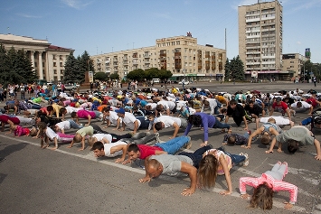 У масовому віджиманні за попередніми підрахунками взяли участь близько 200 осіб.
