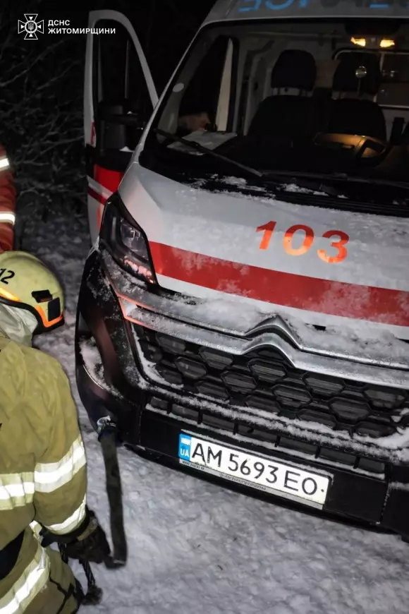 За інформацією рятувальників, сьогодні близько 05:30 вони надали допомогу працівникам екстреної медичної допомоги у селі Коренівка Коростенського району — автомобіль “швидкої” з пацієнтом застряг у сніговому заметі. Рятувальники приєднали трос до пожежного автомобіля та відбуксирували “швидку” на безпечну ділянку дороги, після чого медики продовжили рух до лікувального закладу.