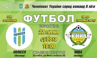 Вже в цю суботу, 22 липня, житомирський футбольний клуб "Полісся" дебютує в чемпіонаті України серед команд ІІ ліги. В рамках 2 туру житомиряни прийматимуть вінницьку "Ниву-В". Щоправда, домашні матчі клубу відбуватимуться в Коростені, на стадіоні "Спартак", через реконструкцію центрального стадіону в Житомирі.