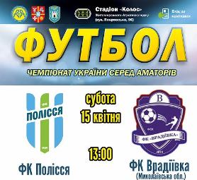 Вже в цю суботу, 15 квітня, футбольний клуб "Полісся" знову гратиме в Житомирі матч аматорського чемпіонату України. В рамках 13 туру житомиряни прийматимуть ФК "Врадіївку" з Миколаївської області.