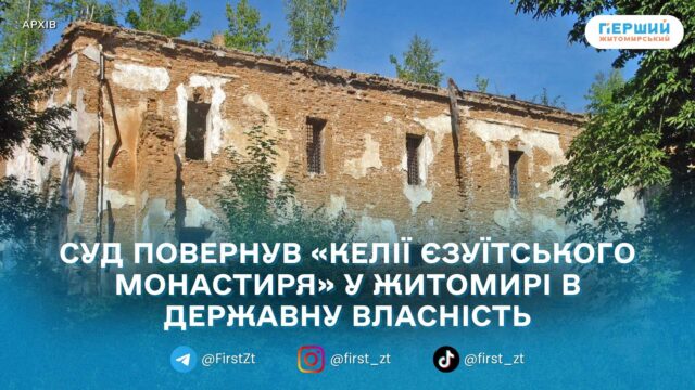 За інформацією, прокурори Житомирської окружної прокуратури в суді довели, що право приватної власності на будівлі колишнього єзуїтського монастиря було зареєстровано за юридичною особою з порушенням вимог законодавства. У повідомленні зазначають, що споруда є об’єктом державної власності та належить до пам’яток культурної спадщини національного значення.