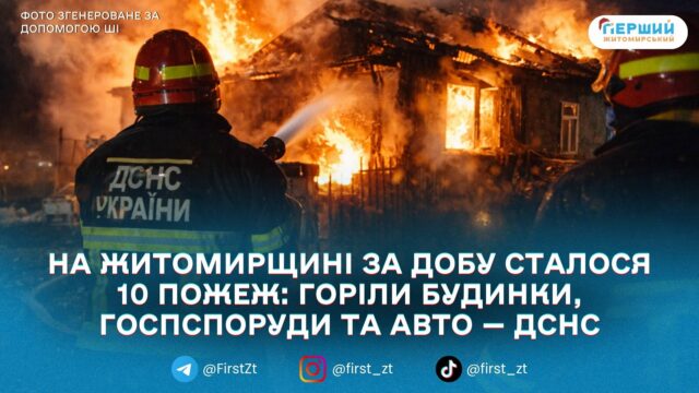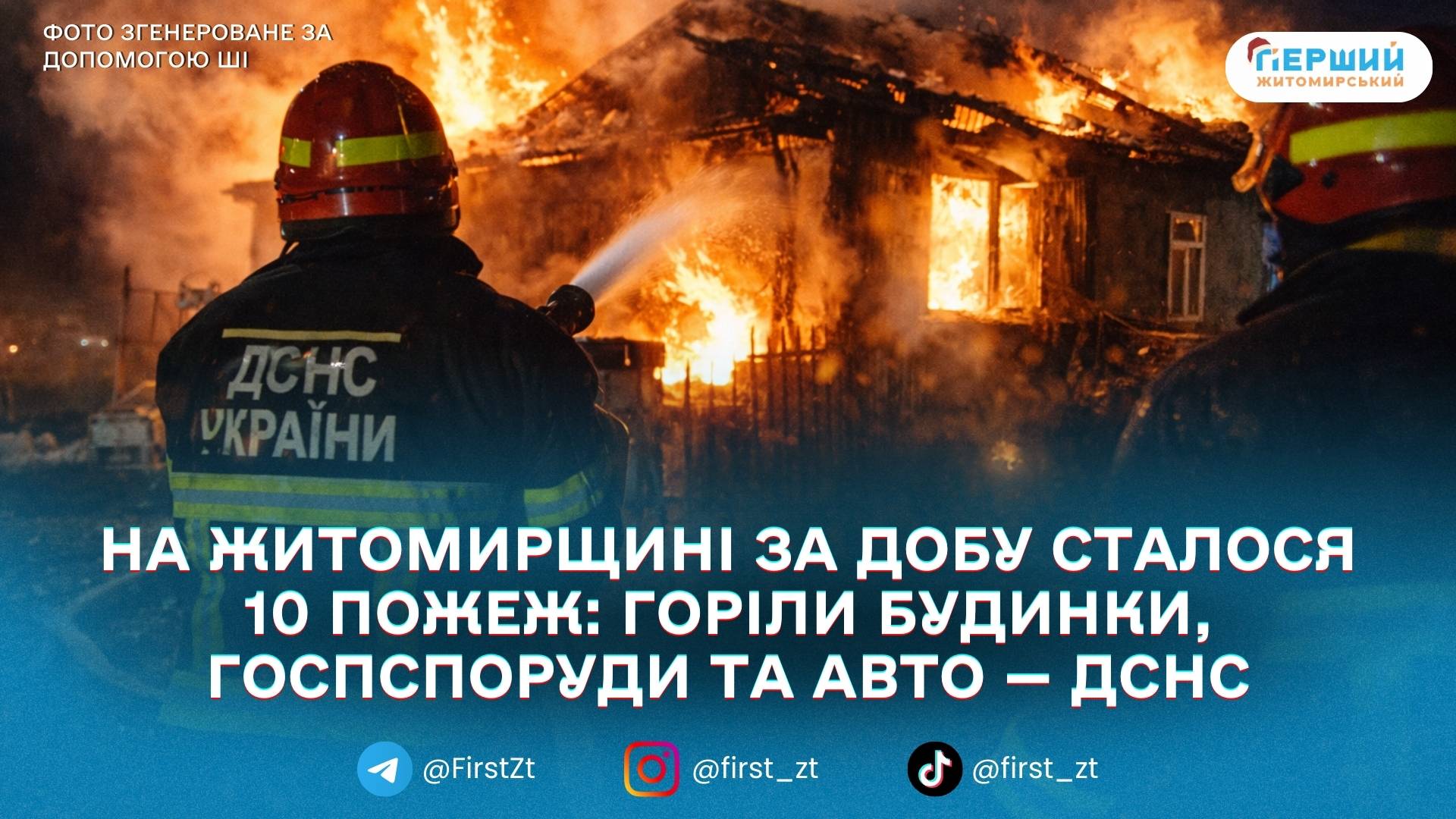 Упродовж минулої доби підрозділи ДСНС Житомирщини 10 разів виїжджали на ліквідацію пожеж у населених пунктах області. Про це повідомили в ГУ ДСНС у Житомирській області.