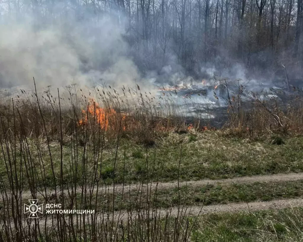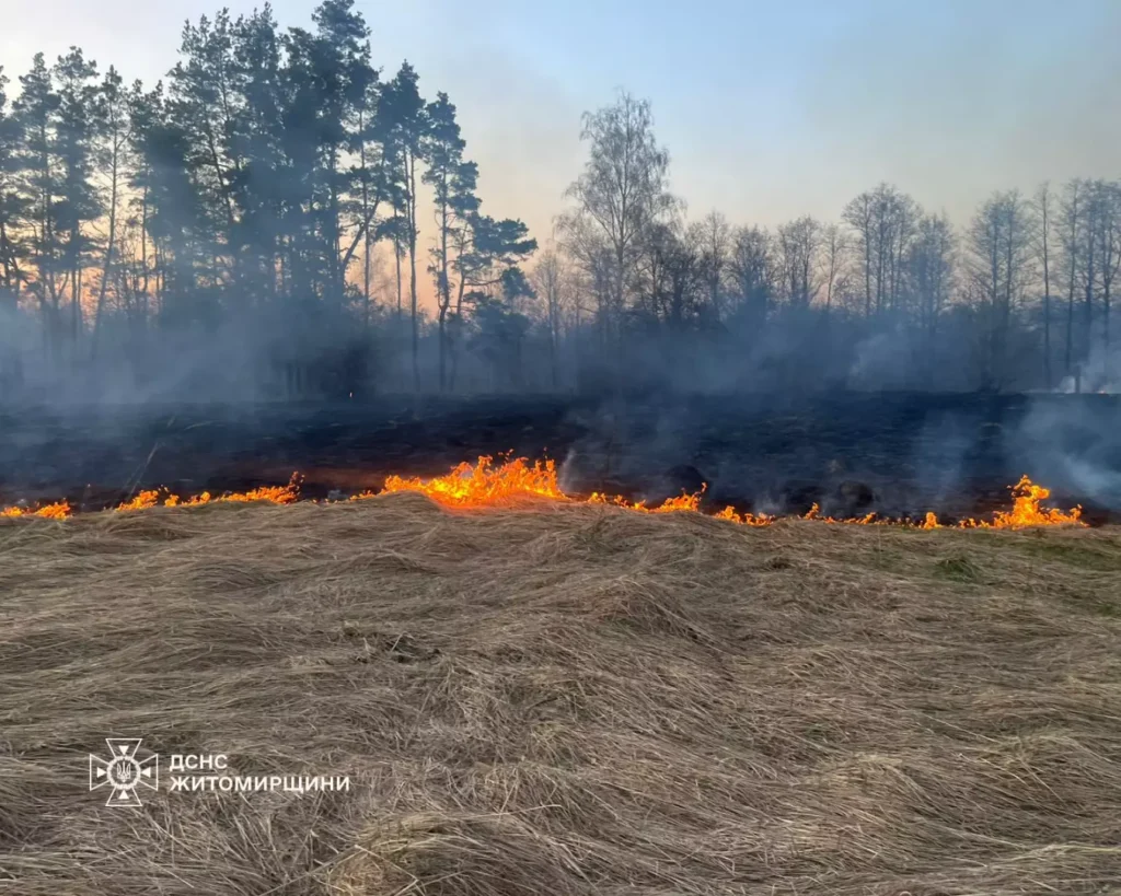 На Житомирщині знову масово палають екосистеми через спалювання сухої трави. Лише за минулу добу руйнівний вогонь випалив понад 17 гектарів землі.
